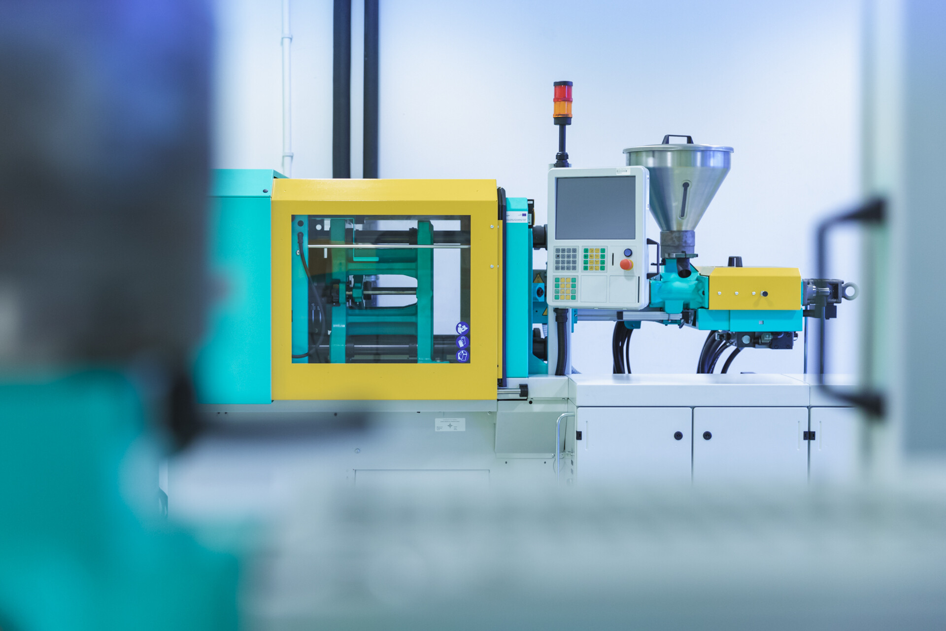 Formowanie wtryskowe – wprowadzenie materiału do form, uzyskanie tzw. części zielonej (green part).
